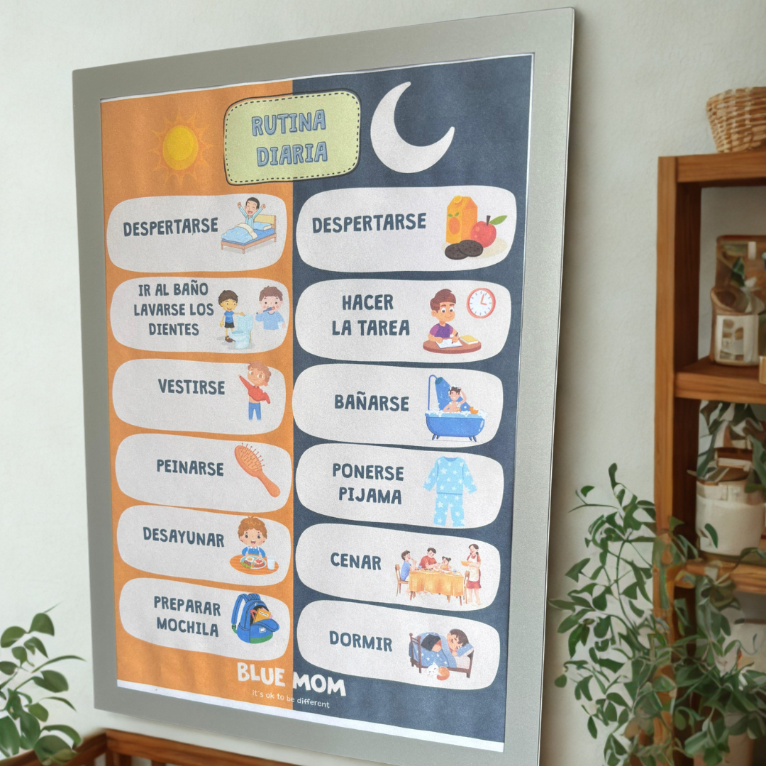 La pizarra imantada de rutina diaria es una herramienta práctica y visual pensada para organizar las actividades de los niños de forma clara y atractiva.